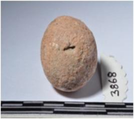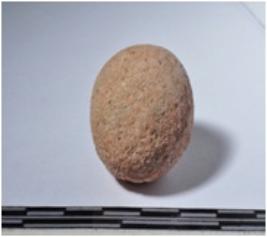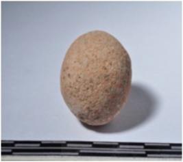 | Description / विवरण | A terracotta round shaped sling ball of smooth surface. |