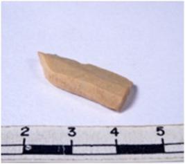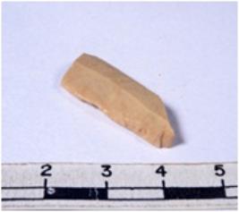 | Description / विवरण | A fragment of a rectangular shaped chert blade showing dorsal sides with sharp cutting edges having smooth surface and triangular section. |