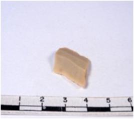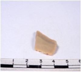| Description / विवरण | A fragment of a rectangular shaped chert blade showing dorsal sides with sharp edges having smooth surface and triangular section. |