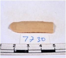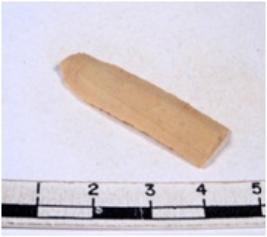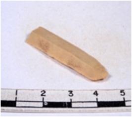 | Description / विवरण | A fragment of a rectangular shaped chert blade showing parallel sides with sharp edges having smooth surface and triangular section. |