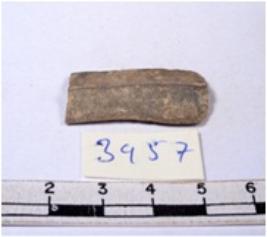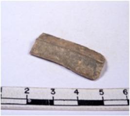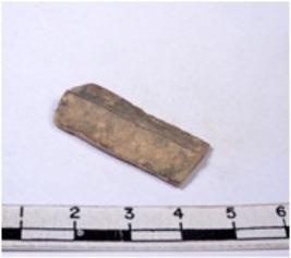| Description / विवरण | A fragment of a rectangular shaped chert blade showing parallel sides with sharp edges having smooth surface and uneven section. |