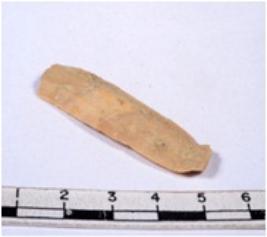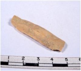 | Description / विवरण | A fragment of a rectangular shaped chert blades showing dorsal sides with sharp edges having smooth surface and triangular section. |