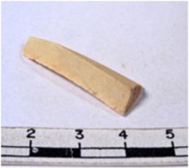 | Description / विवरण | A fragment of a rectangular shaped chert blade showing dorsal sides with sharp edges having smooth surface and triangular section. |