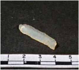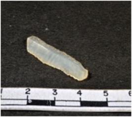 | Description / विवरण | A fragment of a rectangular shaped chalcedony blade showing dorsal sides with sharp cutting edges having smooth surface and triangular section. |