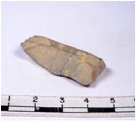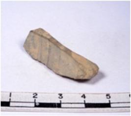 | Description / विवरण | A fragment of a rectangular shaped chert blade showing dorsal sides with sharp edges having smooth surface and triangular section. |