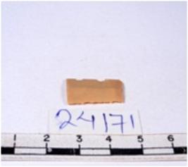 | Description / विवरण | A fragment of a rectangular shaped chert blade showing dorsal sides with sharp edges having smooth surface and triangular section. |