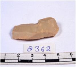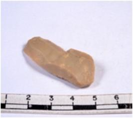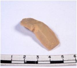 | Description / विवरण | A fragment of a rectangular shaped chert blade showing dorsal sides with sharp edges having smooth surface and triangular section. |