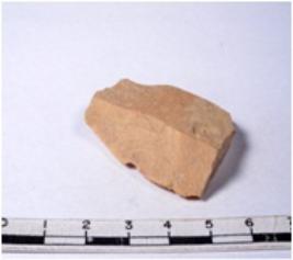 | Description / विवरण | A fragment of a oval shaped chert blade showing dorsal sides with sharp edges having smooth surface and triangular section. |