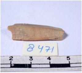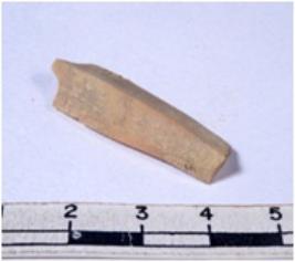 | Description / विवरण | A fragment of a rectangular shaped chert blade showing dorsal sides with sharp edges having smooth surface and triangular section. |