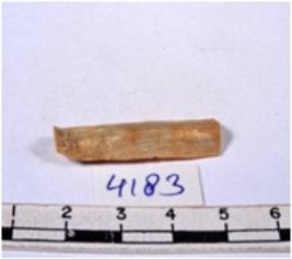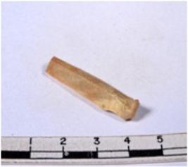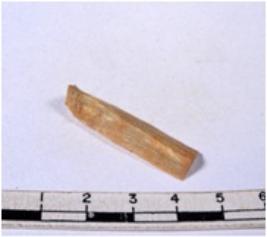 | Description / विवरण | A fragment of a rectangular shaped chert blade showing dorsal sides with sharp edges having smooth surface and triangular section. |