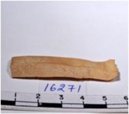 | Description / विवरण | A fragment of a rectangular shaped chert with sharp cutting edges having smooth surface and triangular section. |