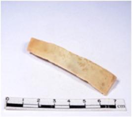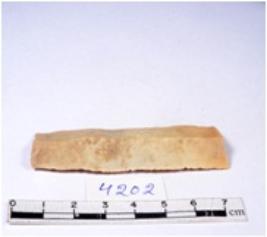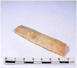 | Description / विवरण | A fragment of a rectangular shaped chert blade showing dorsal sides with sharp cutting edges having smooth surface and triangular section. |