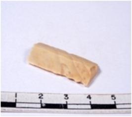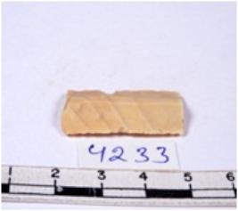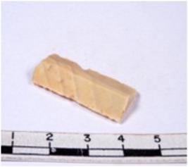 | Description / विवरण | A fragment of a rectangular shaped chert blade showing dorsal sides with sharp cutting edges having smooth surface and triangular section. |