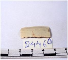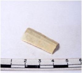 | Description / विवरण | A fragment of a rectangular shaped chert blade showing dorsal sides with sharp edges having smooth surface and triangular section. |