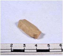 | Description / विवरण | A fragment of a rectangular shaped chert blade showing dorsal sides with sharp cutting edges having smooth surface and triangular section. |