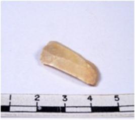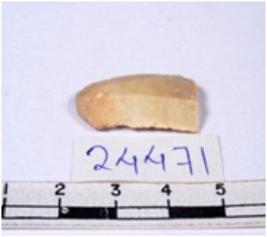 | Description / विवरण | A fragment of a rectangular shaped chert blade showing dorsal sides with sharp cutting edges having smooth surface and triangular section. |
