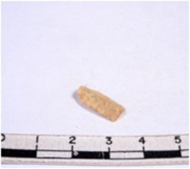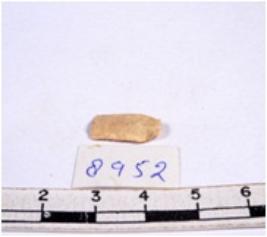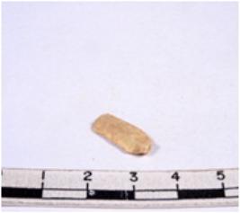 | Description / विवरण | A fragment of a rectangular shaped chert blade showing dorsal sides with sharp cutting edges having smooth surface and triangular section. |