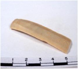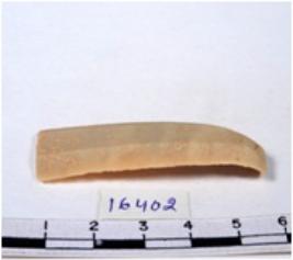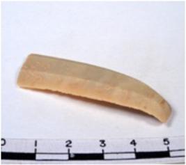 | Description / विवरण | A fragment of a rectangular shaped chert blade showing dorsal sides with sharp cutting edges having smooth surface and triangular section. |
