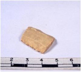 | Description / विवरण | A fragment of rectangular shaped chert blade showing dorsal sides with sharp edges having smooth surface and triangular section. |