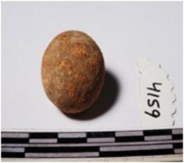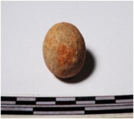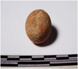 | Description / विवरण | A terracotta round in shaped sling ball of rough surface. |