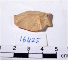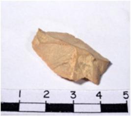 | Description / विवरण | A fragment of a oval shaped chert blade showing bulb of precaution on ventral sides having smooth surface and uneven section. |