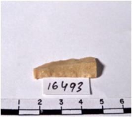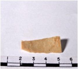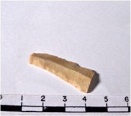 | Description / विवरण | A fragment of a triangular shaped chert blade showing dorsal sides with sharp cutting edges having fine surface and triangular section. |