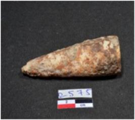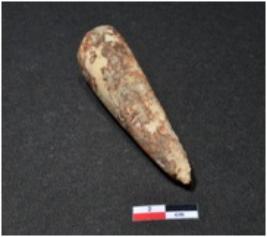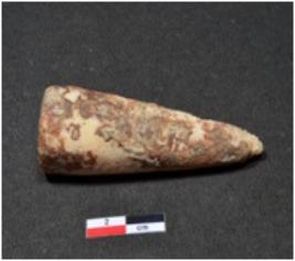 | Description / विवरण | A long sized shell point showing conical in shaped, pointed on one end, having rough surface. |