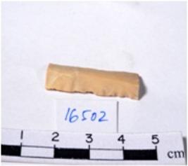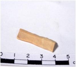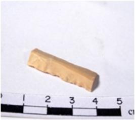 | Description / विवरण | A fragment of a rectangular shaped chert blade showing dorsal sides with sharp cutting edges having smooth surface and triangular section. |