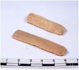 | Description / विवरण | A fragment of a rectangular shaped chert blades showing dorsal sides with sharp cutting edges having smooth surface and triangular section. |