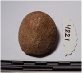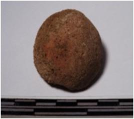 | Description / विवरण | A fragment of a terracotta round in shaped sling ball, circular in section of smooth surface. |