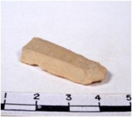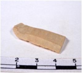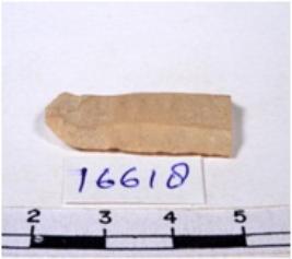 | Description / विवरण | A fragment of a oval shaped chert blade showing flat sides with sharp cutting edges having smooth surface and oval like section. |