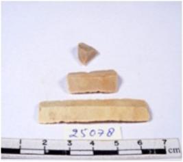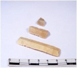 | Description / विवरण | A fragment of a rectangular shaped chert blade showing dorsal sides with sharp edges having smooth surface and triangular section. |