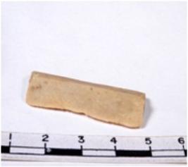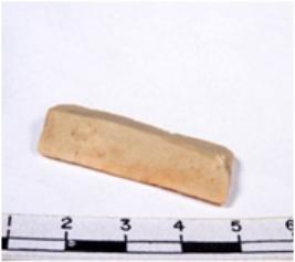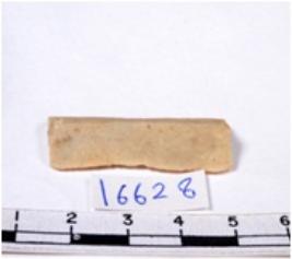 | Description / विवरण | A fragment of a rectangular shaped chert blade showing dorsal side with sharp cutting edges having smooth surface and triangular section. |