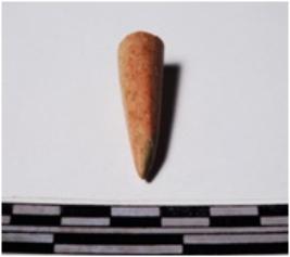 | Description / विवरण | A fragment of a terracotta point, pointed one end, circular in section of smooth surface. |