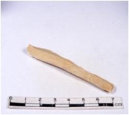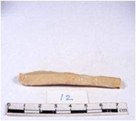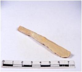 | Description / विवरण | A fragment of a rectangular shaped chert blade showing dorsal sides with sharp cutting edges having smooth surface and triangular section. |