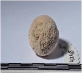 | Description / विवरण | A terracotta round in shaped sling ball of smooth surface. |