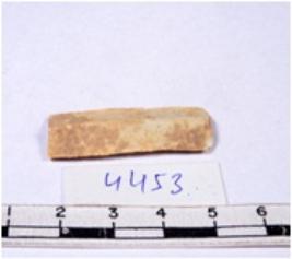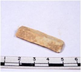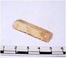 | Description / विवरण | A fragment of a rectangular shaped chert blade showing dorsal sides with sharp edges having smooth surface and triangular section. |