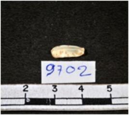 | Description / विवरण | A fragment of a rectangular shaped chalcedony blade showing dorsal sides with sharp cutting edges having smooth surface and triangular section. |