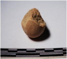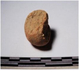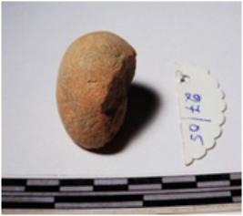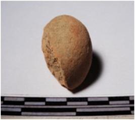 | Description / विवरण | A fragment of a terracotta sling ball globular in shape of smooth surface. |