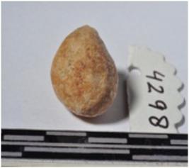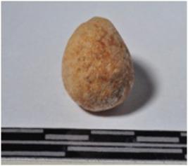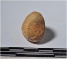 | Description / विवरण | A terracotta sling ball, round in shaped and rough surface. |