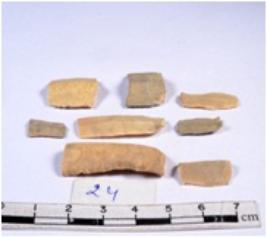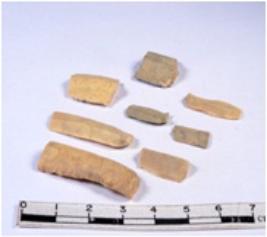 | Description / विवरण | A fragment of a rectangular shaped chert blade showing dorsal sides with sharp edges having smooth surface and triangular section. |