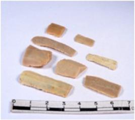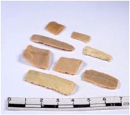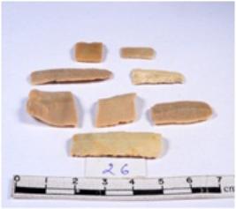 | Description / विवरण | A fragment of a rectangular shaped chert blade showing dorsal sides with sharp edges having smooth surface and triangular section. |