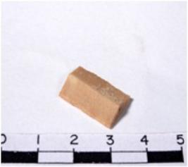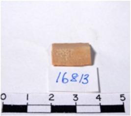 | Description / विवरण | A fragment of a rectangular shaped chert blade showing dorsal sides with sharp cutting edges having smooth surface and triangular section. |