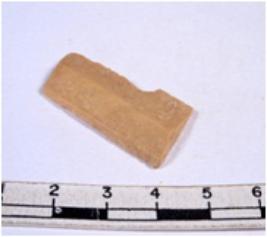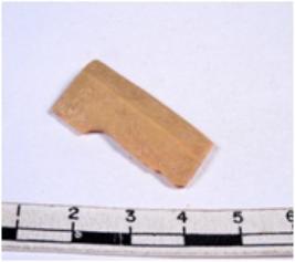 | Description / विवरण | A fragment of a rectangular shaped chert blade showing dorsal sides with sharp cutting edges having smooth surface and triangular section. |