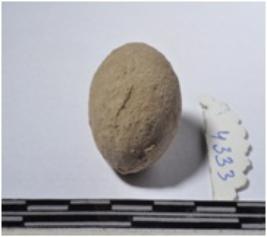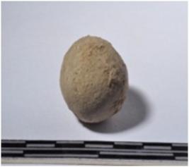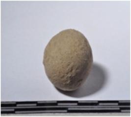 | Description / विवरण | A terracotta sling ball round in shape of smooth surface. |