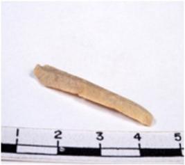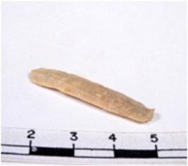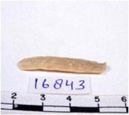 | Description / विवरण | A fragment of a rectangular shaped chert blade showing dorsal sides with sharp edges having smooth surface and triangular section. |