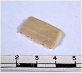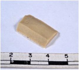 | Description / विवरण | A fragment of a rectangular shaped chert blade showing dorsal sides with sharp cutting edges having smooth surface and triangular section. |