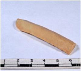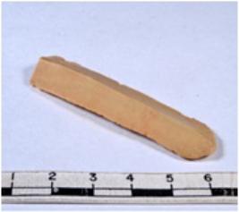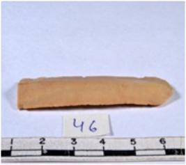 | Description / विवरण | A fragment of a rectangular shaped chert blade showing dorsal sides with sharp cutting edges having smooth surface and triangular section. |