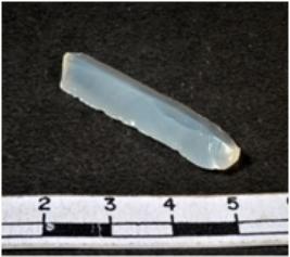 | Description / विवरण | A fragment of a rectangular shaped chalcedony blade showing dorsal sides with sharp edges having smooth surface and triangular section. |