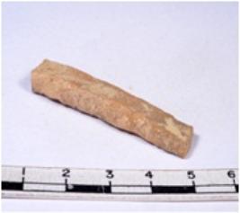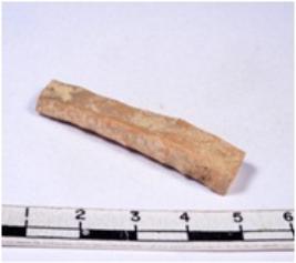 | Description / विवरण | A fragment of a rectangular shaped chert blade showing parallel sides with sharp edges having smooth surface and uneven section. |